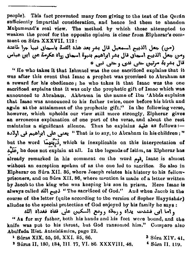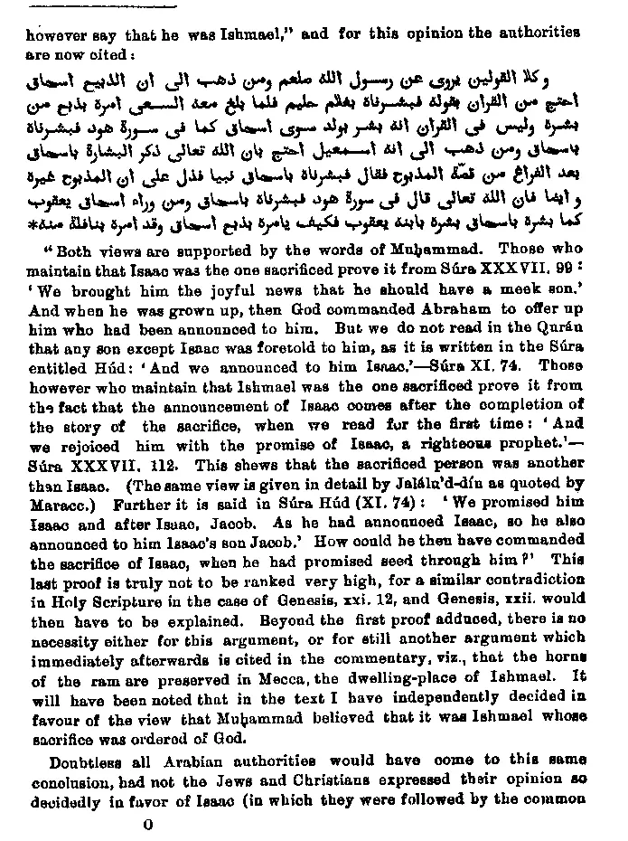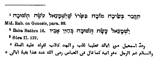 It has already been remarked that, according to Muhammad’s showing, Ishmael* was the son whom Abraham was
