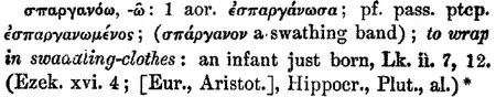 Wrapped in swaddling clothes (esparganwsen).