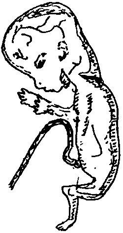 A 26/27 day embryo, said to resemble a mouthful of flesh, but only 3 mm long