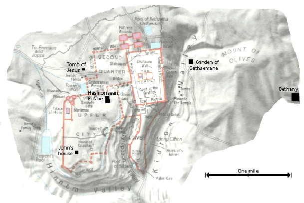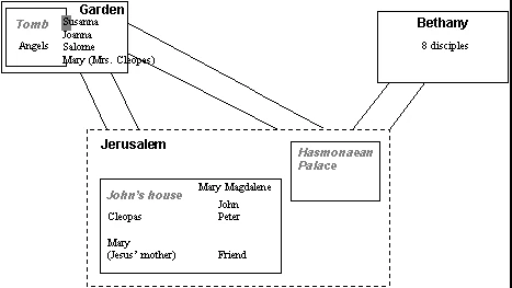 | Location of people on the night after the Sabbath (which finished at sunset) | |