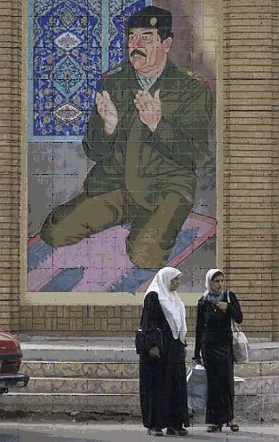 Here is another picture, actually a large painting, of Saddam Hussain praying. Look at this, and then ask if this goes against the teaching of the hadiths. It is understandable though that no Muslims in Iraq voiced any criticism about this, because they would have been killed if they did. Hussein had numerous other pictures of him too. I am not aware of Muslims outside of Iran having outrage over this picture: