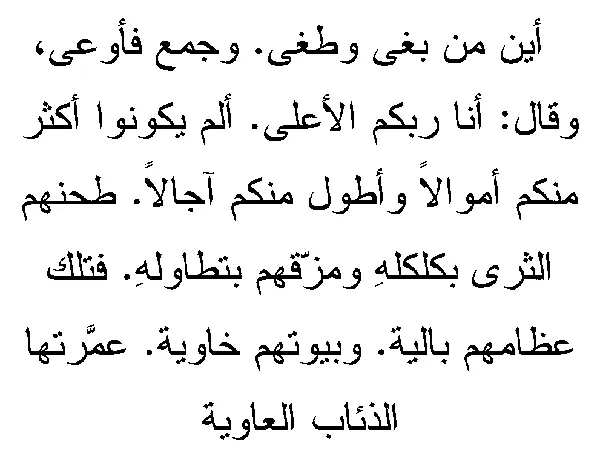 Moist earth has ground them callously and torn them apart arrogantly. Lo! Their bones are decaying. Their houses are devastated, being inhabited by howling wolves."
