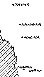 In fact, Dr. Badawi only wrote that "Teman is north of Medina" which is true, even though it is 800 km north, but by adding "just" and stating "Teman is an Oasis just North of Madinah" Al-Kadhi transformed this into a statement of gross ignorance. Even if the switch of Tema and Teman by Dr. Badawi had not occured, one cannot with honesty identify Medina with Tema (modern Tayma', a city about 400 km away from Medina) as Al-Kadhi does in his bold claims. According to the dictionaries this use of the word "just" means "closely, nearly, almost", or "by a small margin". 400 km is not a small margin. Tayma' is about the same distance from Medinah as Mecca. Al-Kadhi seriously misleads the reader.