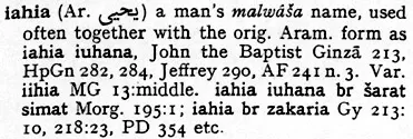 A Mandaic Dictionary[22] throws further light on the names "iahia" and "iuhana" as used in their holy books:
